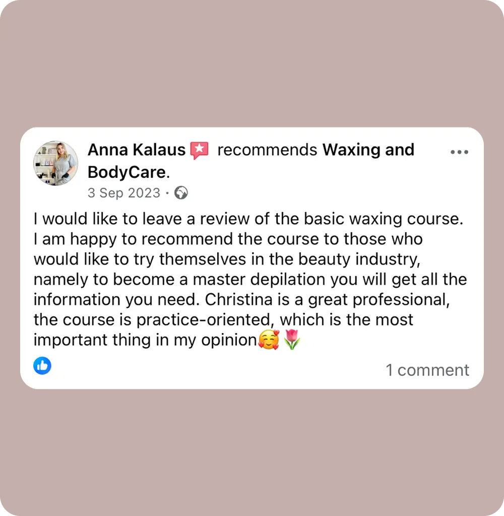 My name is Kristina and I am a waxing specialist and the owner of this course.